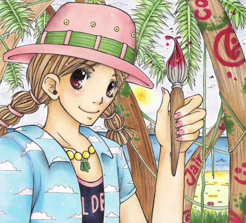 The sketch in the foreground comes from Lysoppe, I worked it out, redrawn it, colored it and made a HG! Miss Goldenweek !!! ^^