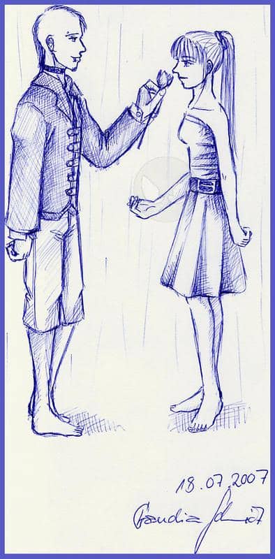 Again a sketchy pen picture .. and unfortunately ... with far too many mistakes ... starting with the hand with the flower .. which is somehow a bit too big ... well .. and then there are dozens more. .but ok ... it's just a sketch ... ^^