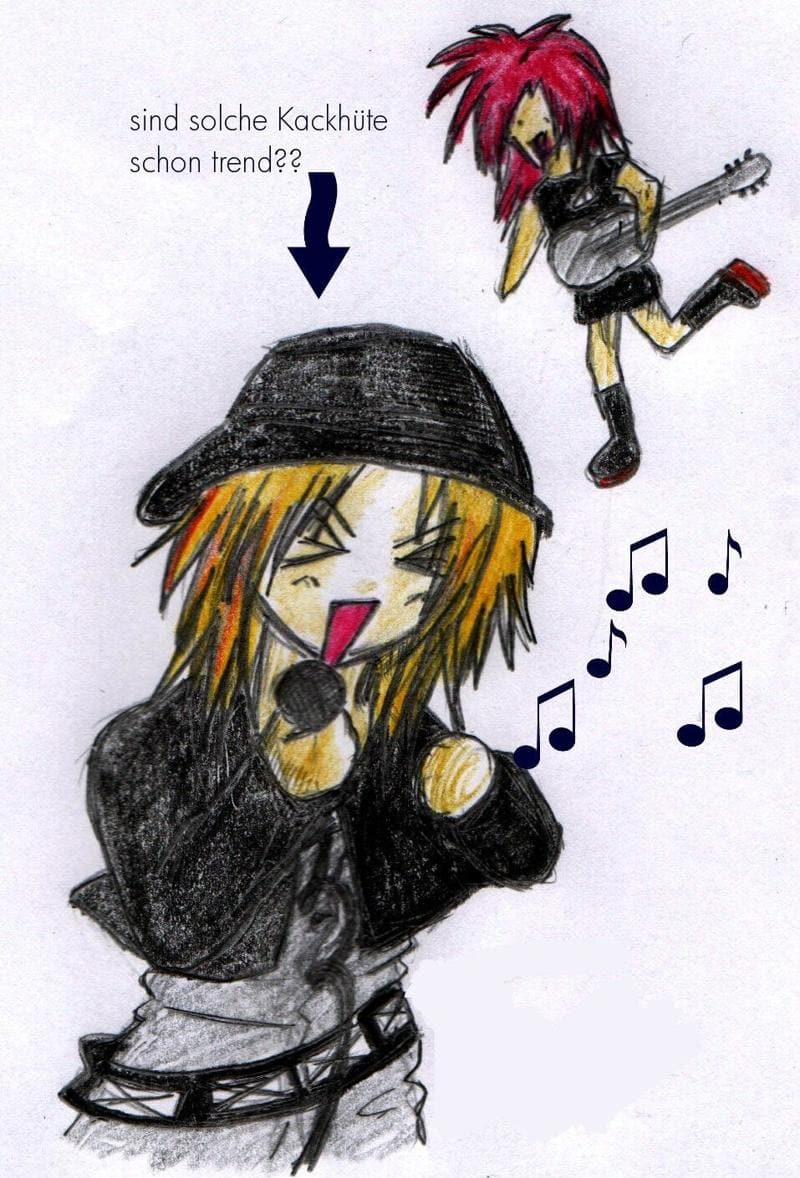 Die and Kyo as Chibis. Actually, I really like Kyo with his hat, but when I drew him the hat went so wrong ... Well, that's why shit hats. It looks a bit limited on the pic, I apologize for that _ (-.-) _