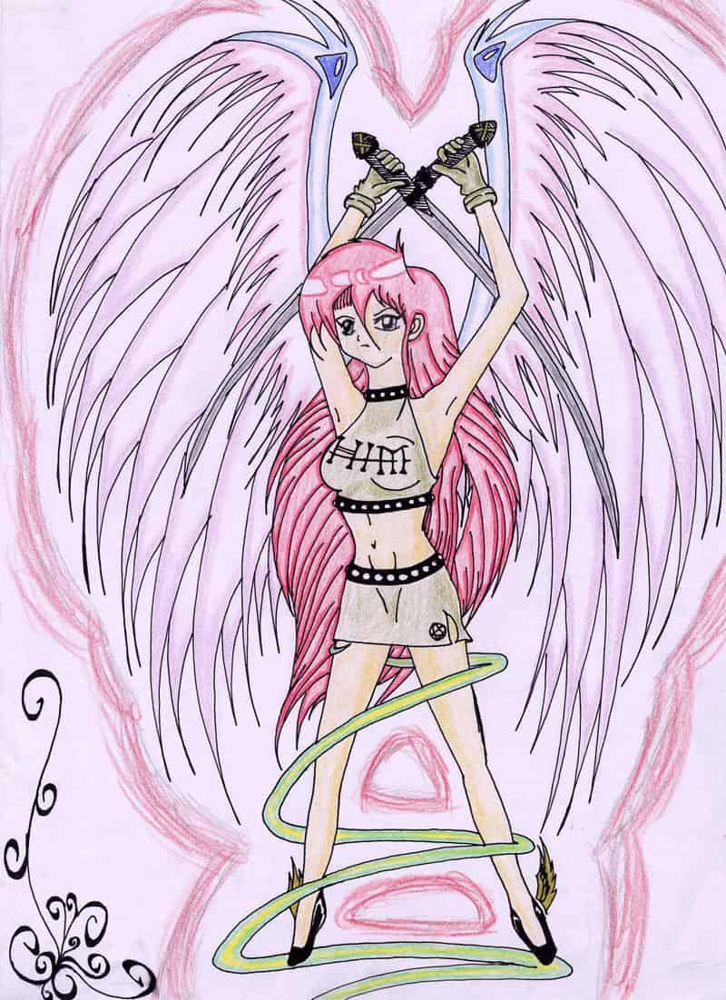 tjo here is se so my 2nd noir ^^ I would have wanted to make the background with my colo program again but I want to make friends with my colored pencils again ^^ I'm actually satisfied with the color combination but something I like the legs net but I'm proud of my fingers ^^. I wanted to get the new Rammstein CD "my part" yesterday, but of course there wasn't any more so I got the HIM "love metal" and I'm thrilled at first I wasn't so sure if he was something for me but the guys are dr hammer so i quickly drew her clothes a little in the same direction. my little angel who understands killing as playing sweet right? ^^ tjo and I made the title appropriate. I scribbled the pattern at the bottom left in the picture for a long time, but now I'm not so sure whether that really fits the picture well you can decide ^^ I will go to the next pic now aso yes if any of you n I always wanted a picture; D so until then your kaila ^^ heagdl ps. the picture is dedicated to everyone who likes it ^^ tschaui