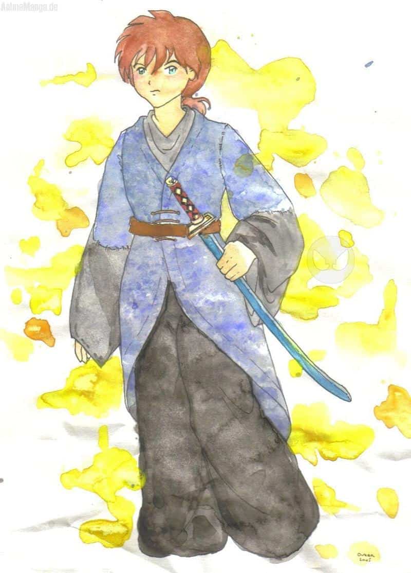 Well ... well, I love to paint my own manga characters, but I never come up with a coherent story ... püüüh. Anyway, he's one of the "heroes", and only after I was done did I notice that this guy is a little, but just a little like Rurouni Kenshin. Sorry for that. Actually, I would really love to edit it with PhotoShop ... yes, snails, if you don't have one. * Shrug *
