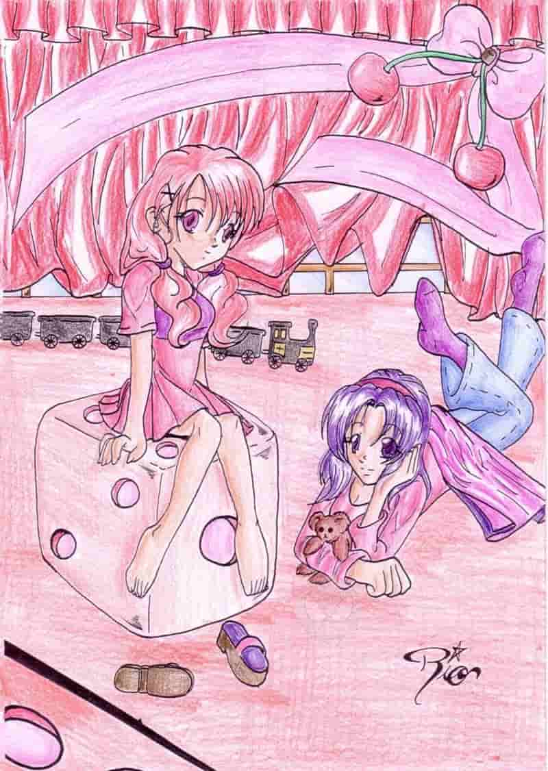 I drew that for my friend's little cousin. She is about 3 years old, the cousin, so everything should have a childish style. Hence the whole pink. -_-