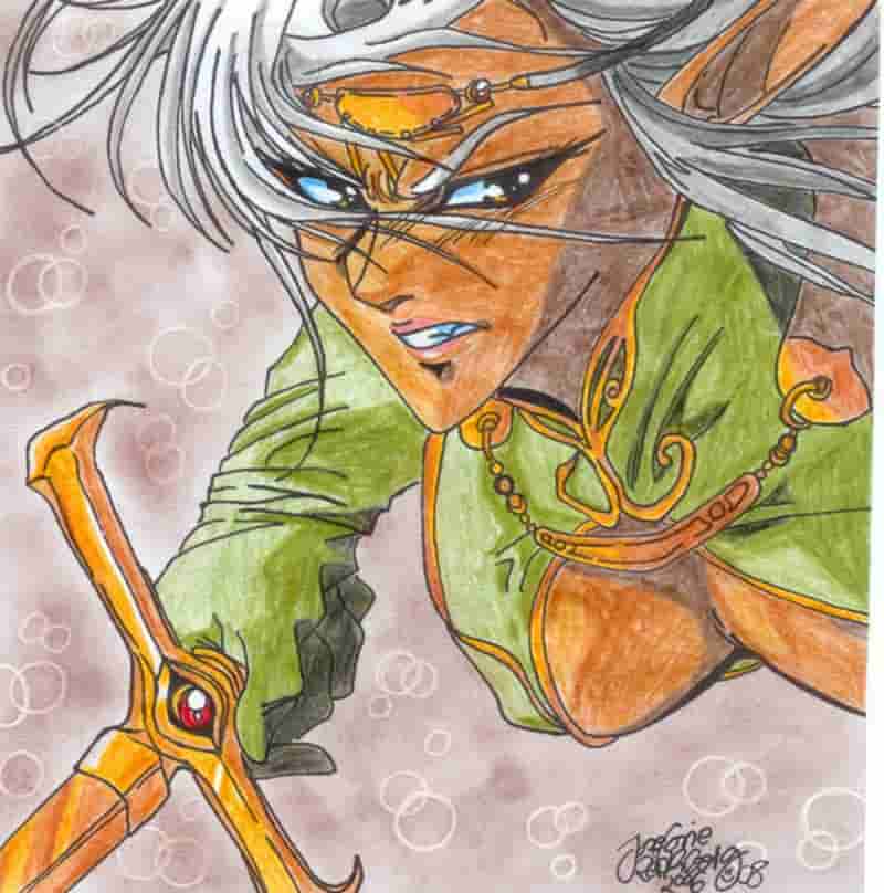 I think this drawing style by Ryo Mizuno is really great and especially the elves Deedlit and Pyrotess are really pretty !!! I am a huge fan of the Record of Lodoss War! (-;