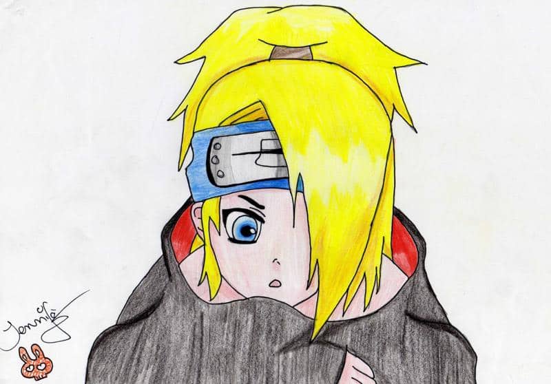 Yes and again a Deidara ^^ I just got it with him XD I recently found the picture on the Internet and I just thought it was so cute, so I tried to draw it myself. I'm actually so completely satisfied with it, except for me his hand ^^ It looks terrible -.- Well, I hope you like it and you leave me a few clerks there ^^ Thx =) hel