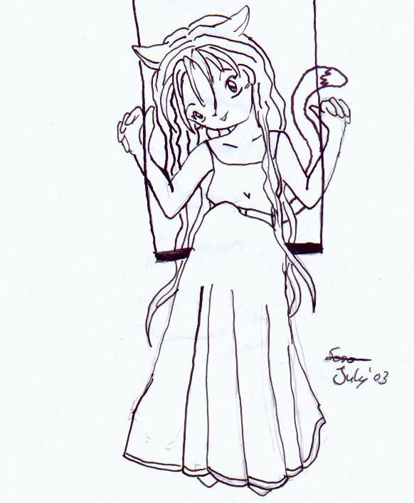 Das soll Kimiko darstellen (mein letztes Bild übrigens auch^^") wie sie auf einer Schaukel sitzt... Mit Katzenohren^^ Ich widme es