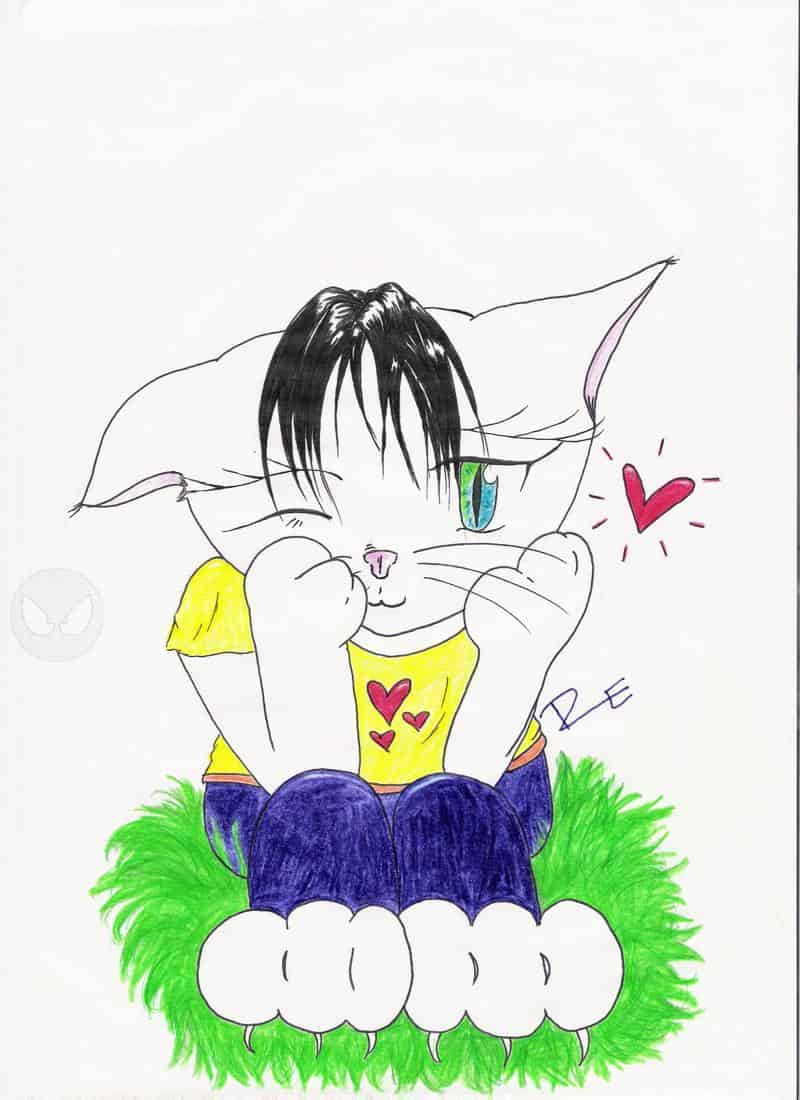Nun dieses Bild habe ich schon länger gezeichnet. Die Katze spielt eine Hauptrolle in meinem Manga "Second love". Nun ich hoffe sie gefällt euch. Ich würde mich freuen, wenn ihr mir eure Gedanken schreiben würdet. Danke eure schwepsy