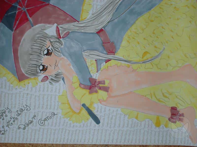 also das bild ist schon sehr alt! das hab ich für meine Oma zum B-day also 29.May 2007 gemalt auf ein din A 2 Blatt war voll die Arbeit dann ist der Schirm noch doof geworden xD