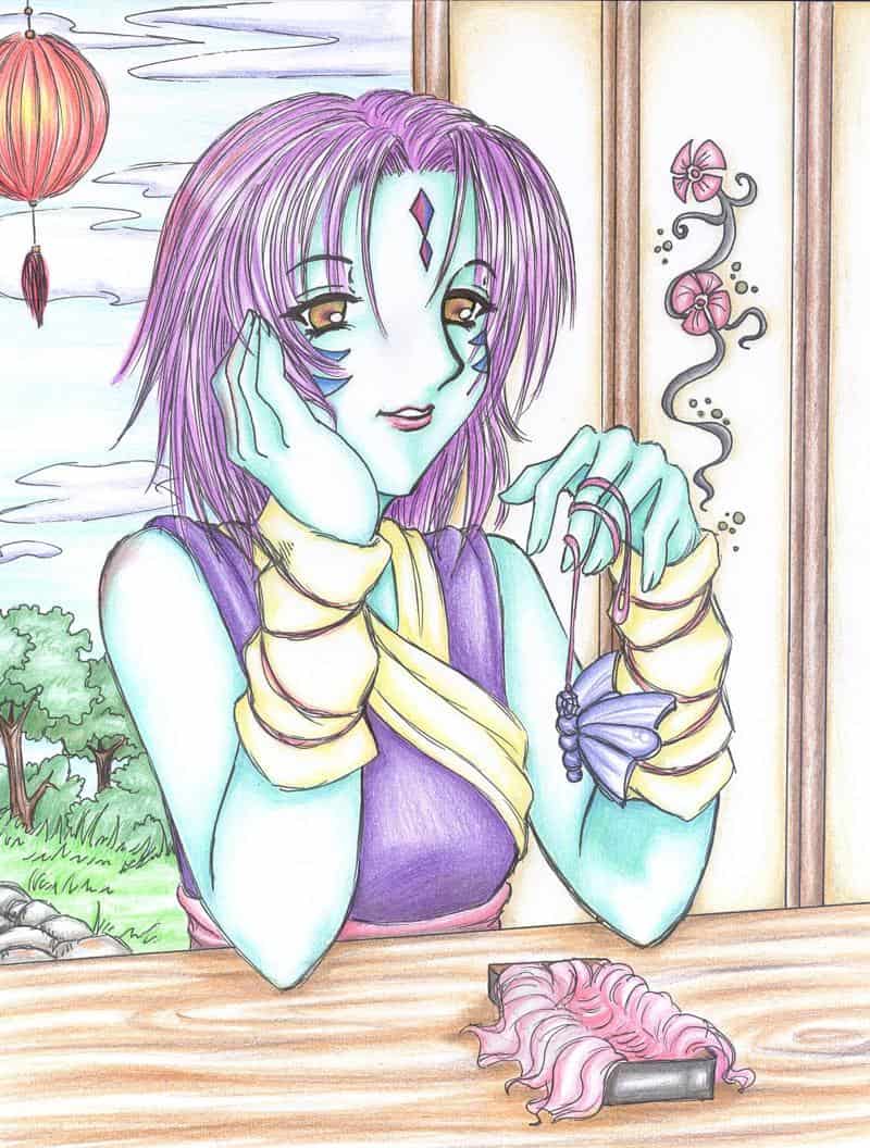 Sie ist so eine art Totenwächterin (eig. nur ne ausrede weil ihr kimono falsch gebunden ist ^^")
