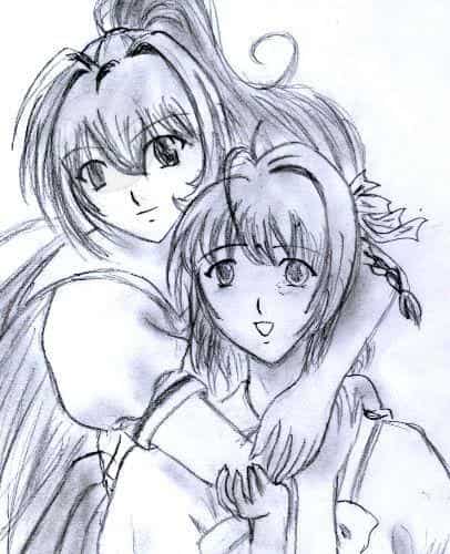 Das Bild habe ich abgezeichnet. Allerdings weiß ich jetzt nicht, zu welcher Anime Serie die beiden Mädchen gehören.
