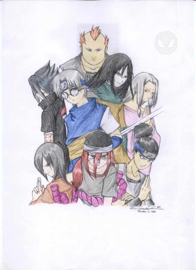Zum Bild selbst gibt es so einiges zu sagen. Erst einmal, ich kann nicht zeichnen, daher habe ich es nur Coloriert. Die Vorlage habe ich im Internet gefunden und ich hoffe, dass der/die Zeichner/in mir nicht gleich den Kopf abbeißt, weil ich das Bild so verschandelt habe. Hier der Link um die Richtigkeit zu bewahren: http://fc02.deviantart.com/fs8/i/2005/343/9/9/Naruto__Otogakure_by_mingming07.jpg