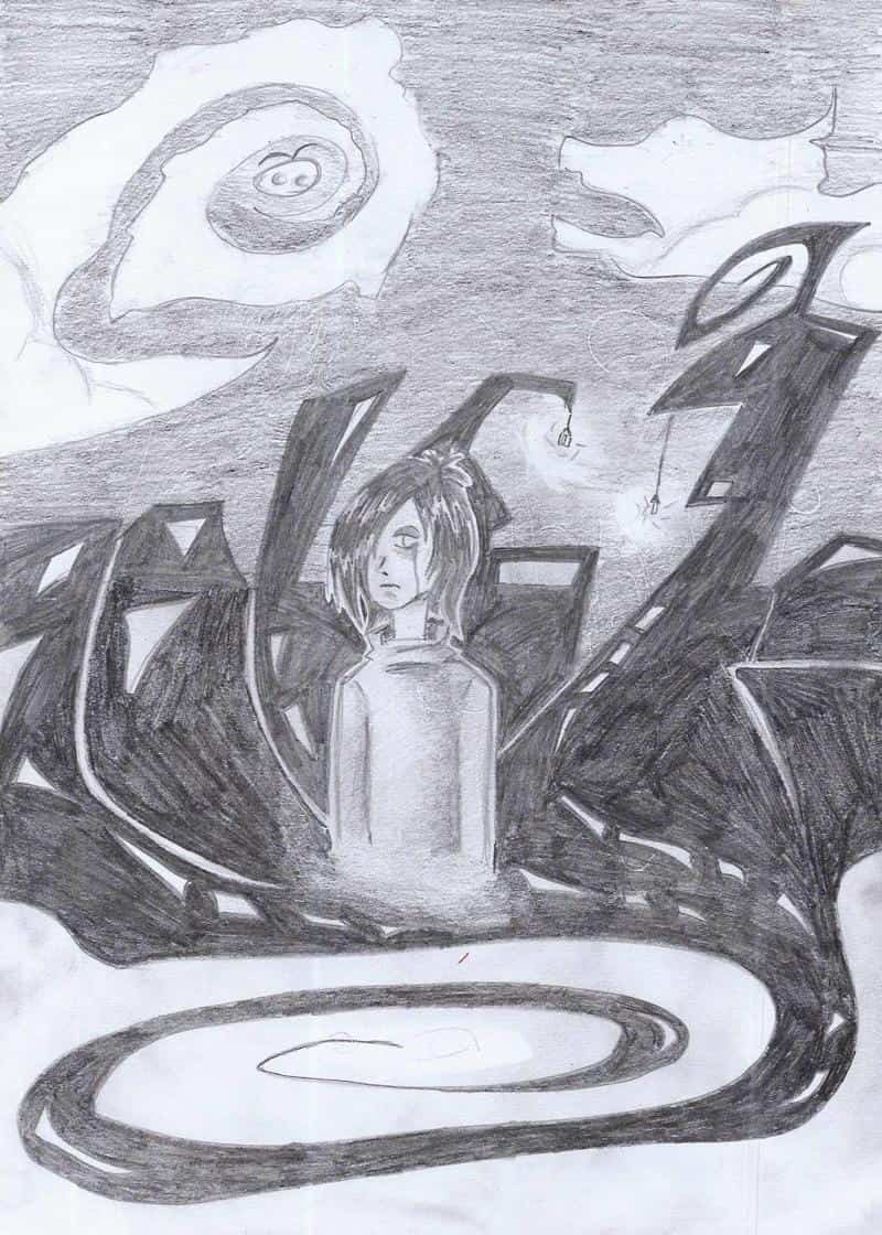 hm.....das bild hat meinen bleistift gefressen...;o;.....XDDDD....ich finds net schlecht ....so von der idee her....die ausführung lässt noch zu wünschen übrig^^°....ich glaub ich versuche das ganze nochmal am rechner...mal....schaun