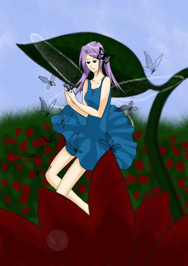 hatte einfach lust eine Blume zu zeichnen, die schmetterlingsdame kam dann irgendwie dazu...