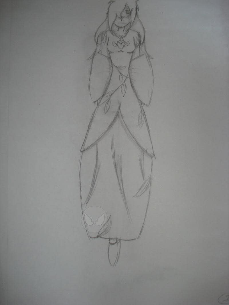 Bild von Dornröschen mti einem langen Kleid, das mit Rosen verschönert ist. Leider drückt auch hier ein anderes Bild durch.