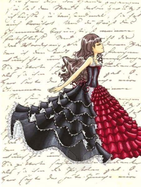Ich habe für dieses Bild Copics verwendet. Ich hab die Figur ausgeschnitten und auf den gedruckten HG geklebt.
