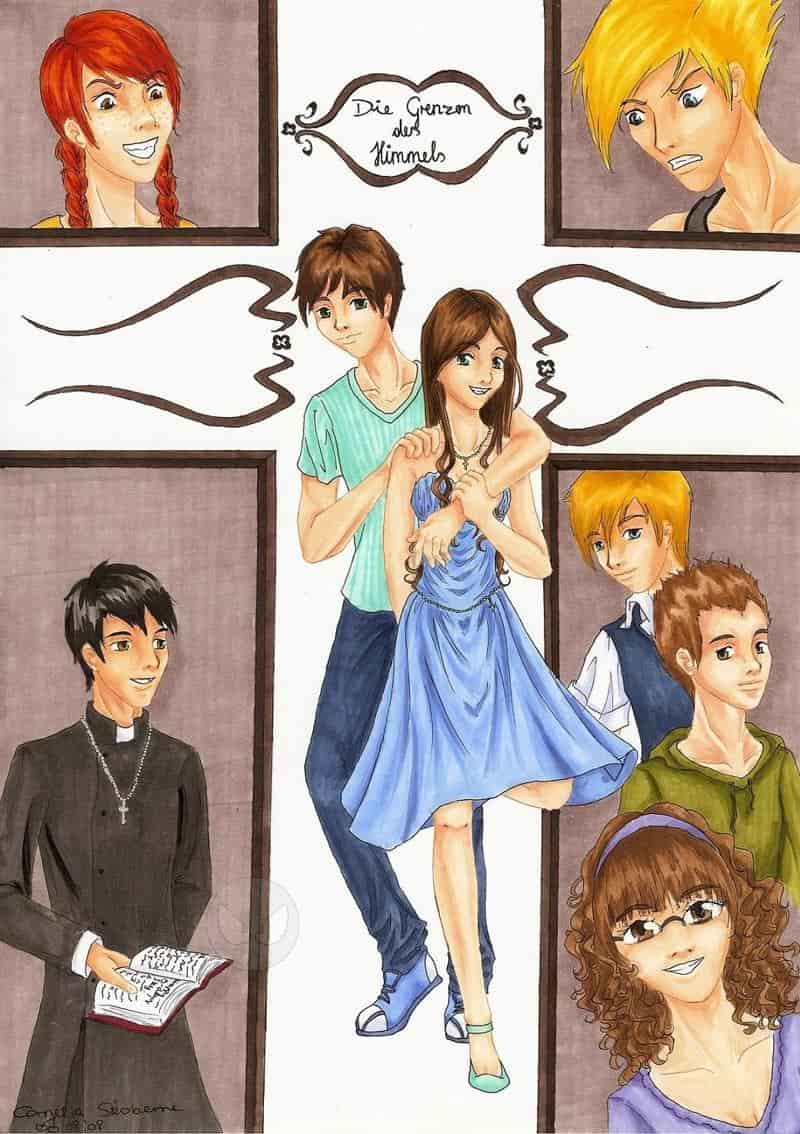 In der Mitte seht ihr unsere beiden Hauptcharaktere Julian und Claire. Die beiden sind Zwillinge und insgeheim ineinander verliebt. Links oben ist Molly, rechts oben Paul. Die beiden sind die 'Bösen Buben'. Links unten befindet sich Pater Cole, welcher den beiden ihre 'Liebesbeichte' abgenommen hat und rechts unten befinden sich ihre Freunde (von oben nach unten)Mark, Michael und Nancy. Wer sich für den RPG interessiert: einfach anschreiben ^^