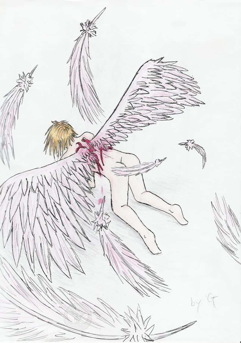 dem typen wachsen flügel und deswegen blutet er am rücken