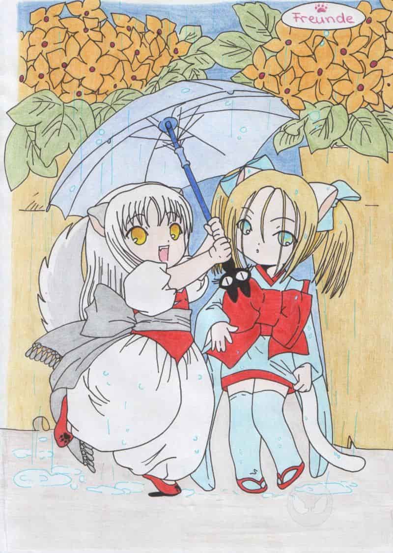 Da hab meinen char und den von meiner freundin im Chobits style gezeichnet^^