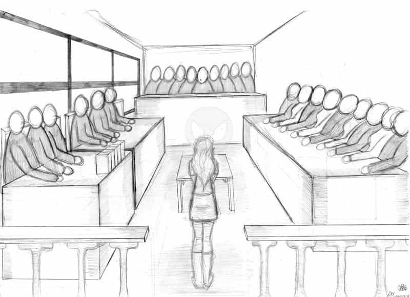 Die komischen Menschen sollen übrigens so aussehen, weil ich Hanna in den Vordergrund rücken wollte und die Richter, Verteidiger, Staatsanwälte und anderen Angeklagten nur abgelenkt hätten.