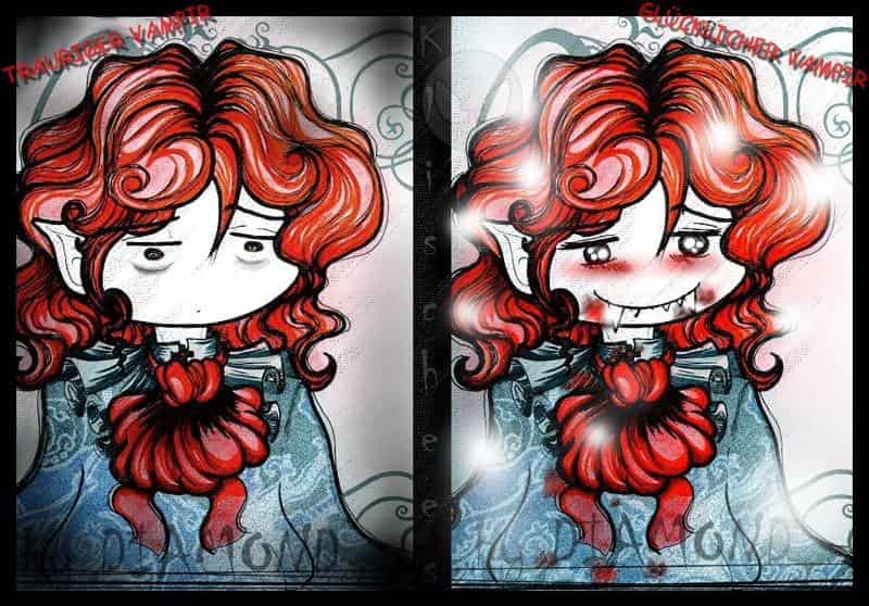 Was sind moderne Vampire. Das sind die Vampire die beonders süß sind. Sie haben meter lange Stoßzähnchen♥, funkel-Kulleraugen, lächeln, haben rote Bäckchen, und funkeln vor freundlichkeit.