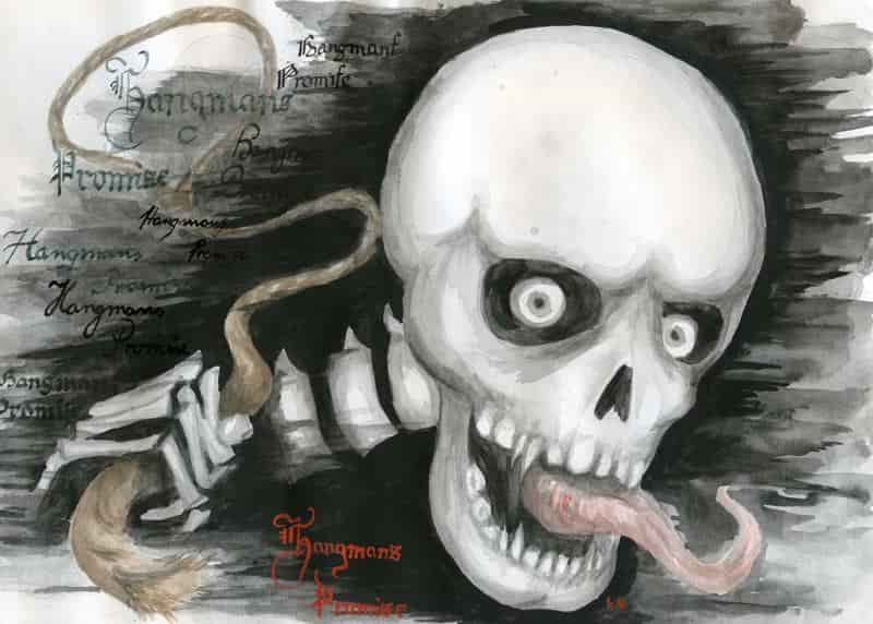 das bild ist aus einer kurzschlussreaktion entstanden. es zeigt den tod wie er mit dem strick nach einem ausholt...es ist aus der not geboren und das in zweierlei hinsicht: 1. es ist ein aquarell geworden, obwohl ich zu aquarellen, wie man sicher erkennen wird, keinerlei talent habe...ich wollte etwas reales greifbares machen. also nichts mit ps, aber ich hatte sämtliche acrylfarbkästen im schließfach in der schule vergessen-.-. also mussten die aquarellfarben herhalten.