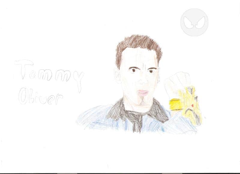 Der legende Power Ranger Tommy in da er sich zu schwarzen Dino Ranger verwandeln.