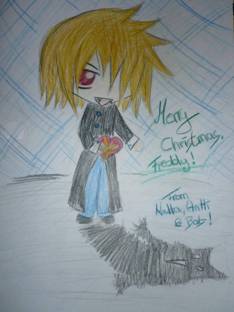 Antti ist der kleine Vampir und Bob sein wahnsinniger Schatten. Wie komm ich jur auf so bekloppte Ideen? Ach ja das Bild war für eine Freundin zu Weihnachten ^^