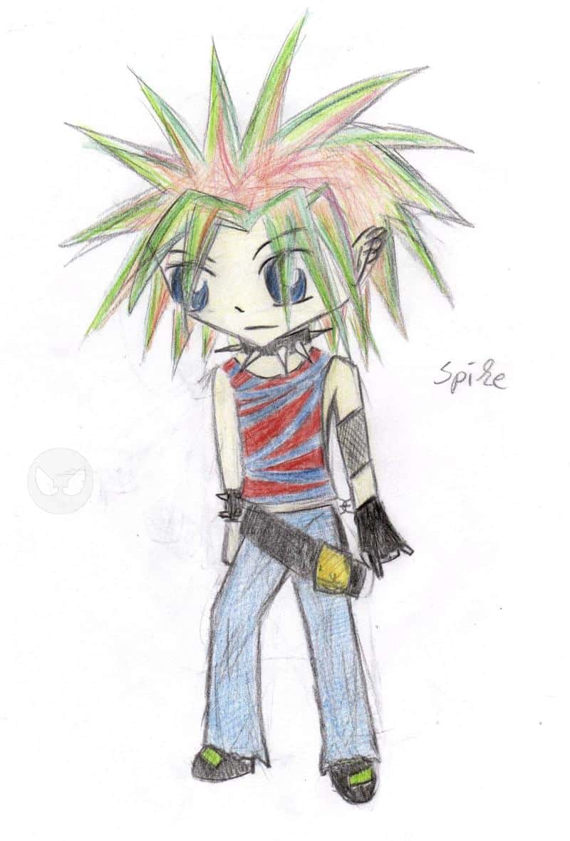 Tja... das ist Spike, einer meiner ersten Chibis die ich gezeichnet habe, aber gefällt mir noch immer. Mein Motto war schlicht: 'Punks not dead!'