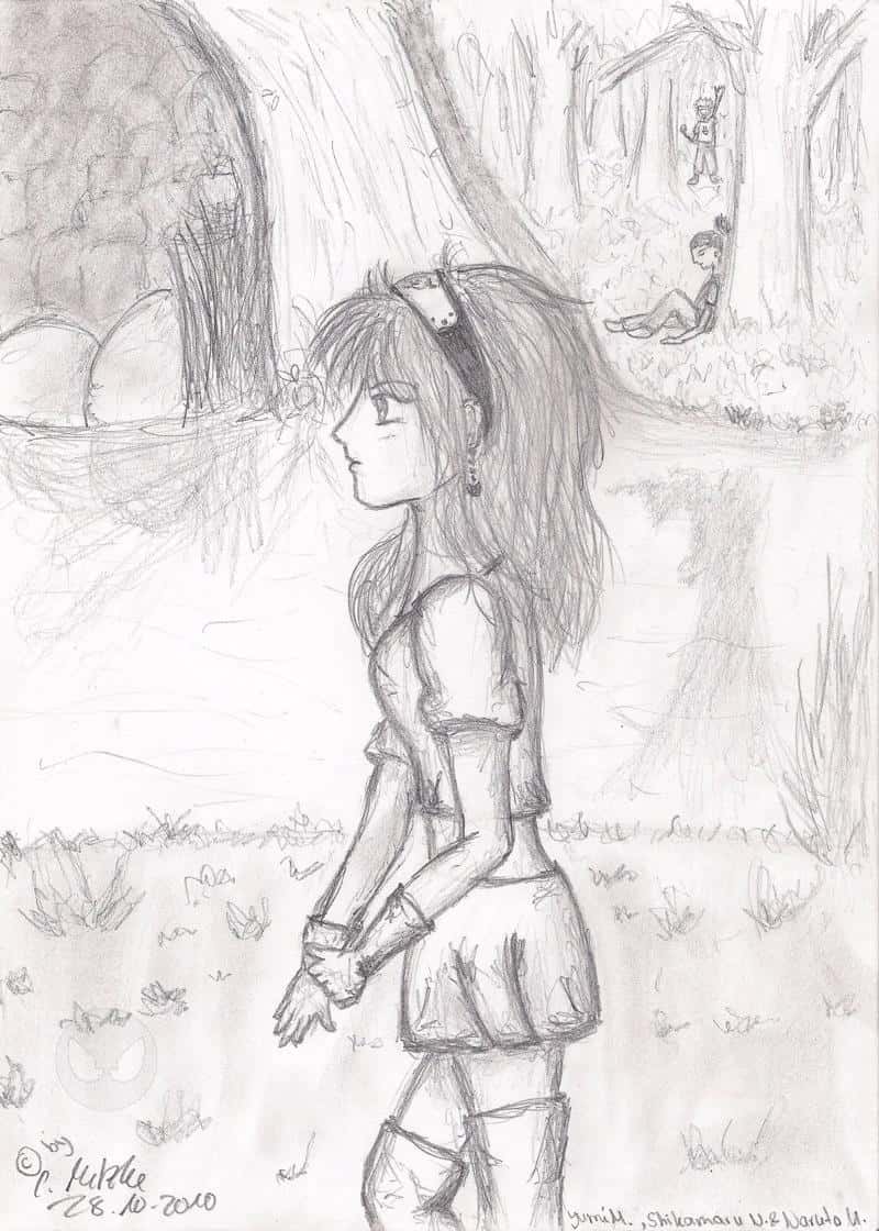 Jaa ... Ich hatte mal Lust so ein Bildchen zu zeichnen. Yumi ist etwas anders dargestellt wie sie eigentlich aussieht. Naja ... Ich find die Klamotten ganz gut gelungen. Nur die Arme und die Hände x,D *schnief* Im Hintergrund ist Shika zu sehen. So wie es sein "Markenzeichen" ist habe ich ihn an einem Bausm gezeichnet. Er schläft. Süß, oder?! *-* Und ganz hinten im Bild ist Naruto zu sehen. Er winkt x,D Naja ... der Wasserfall ist mir mal gar nicht gelungen ... ^^" Sieht aus wie eine Höhle. *lach* Naja, lasst doch ein paar Kommis da. Freu mich. Liebe Grüße Kashi x3