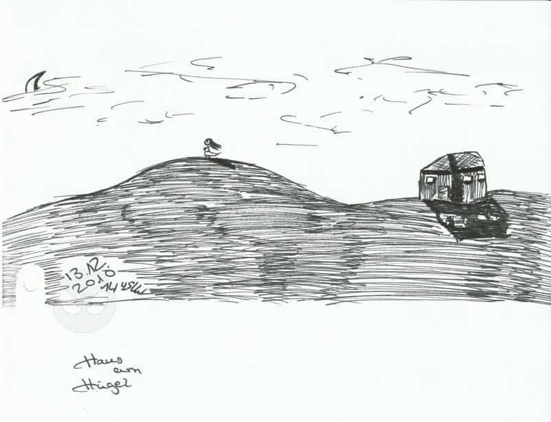 Erst entstand irgendwie der Hügel, dann das Mädchen und danach der Himmel und das Haus.