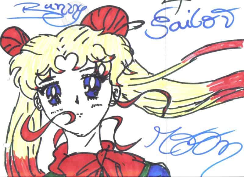 Ich habe mir mal gedacht Bunny mal mit roten Haaren zu malen, ich hatte aber auch nur die Farben zu auswahl die ihr dort seht.