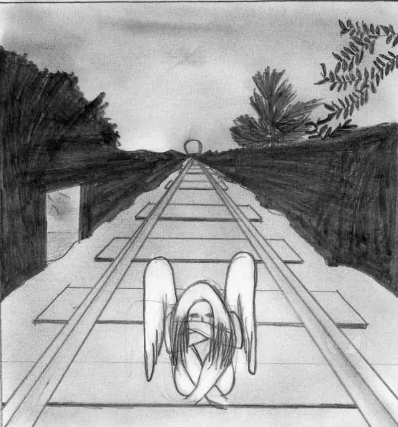 Im Unterischt sollten wir mal ein Bild mit Perspektive Zeichnen, und da ich das schon könnte hab ich es mir nich mal schwerer gemacht und ein Engel dazu gezeichnet. Später hab ich gemerkt das ich das unbewust von ein Bild gezeichnet habe seht es euch an und vergleicht! Was das Unterbewestsein alles kann!