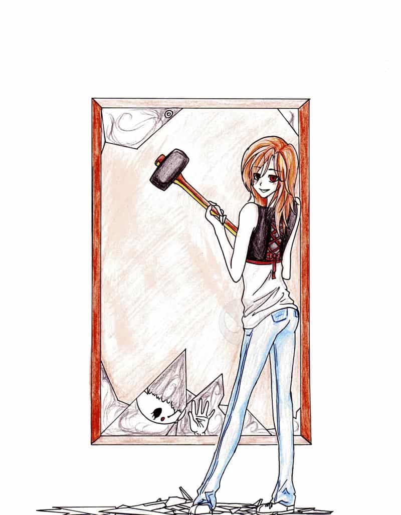 Das ist Lucy~ Eigentlich liebt sie Spiegel doch das Bild weckt den Eindruck dass sie nicht will das jemand anderes ihr Spiegelbild, sprich ihre Seele, sieht. ^^~