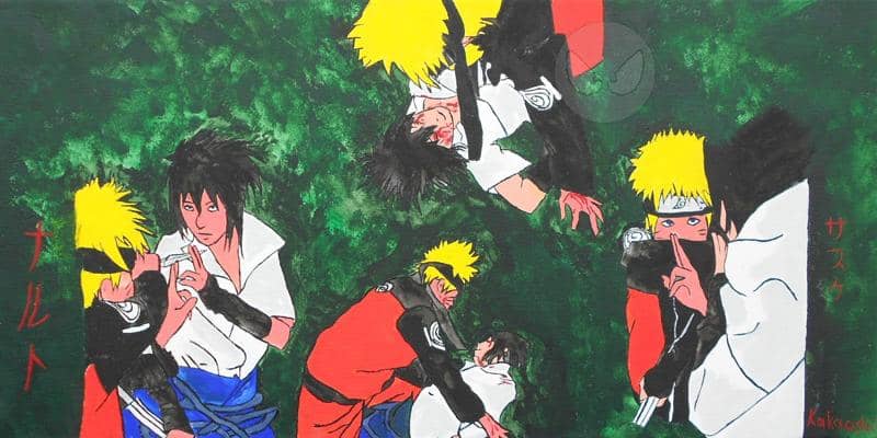 Es war so nerven rauben diese Leinwand zu machen. Echte Menschen ab zu malen ist sau schwer. Und voll die Fusselarbeit wen nes um die hare geht...zumindest bei sasuke hier.