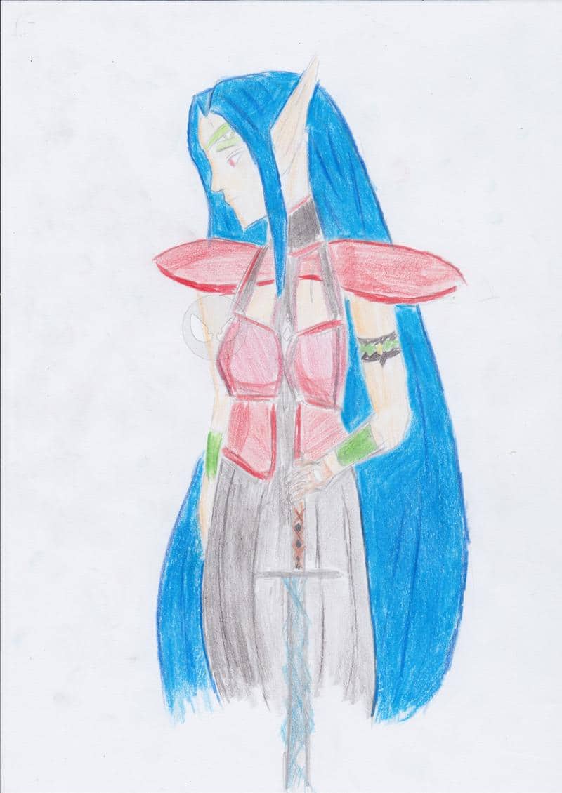 Hier mal ein Versuch einer Elfenkriegerin... ich weiss, ich muss üben Hände zu zeichen ^^°