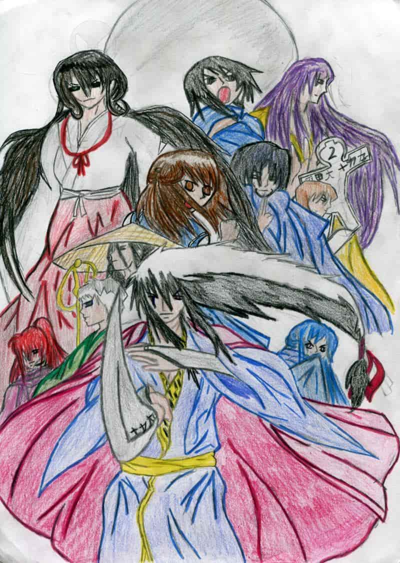 ich hoffe man kann jeden erkennen und die Miko oben ist nicht Kikyo aus Inu yasha oder Hogorome Gitsune,nein das ist ein eigene Charakter,nämlich ein Exorzist der Keikains: Yukiko Keikain.