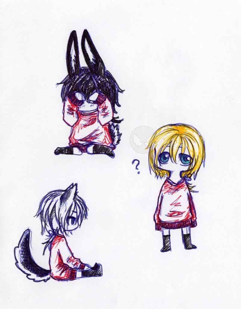 Versucht meinen ersten OC ein bissl auf zu peppen und gleich mal 3 chibiversionen gekritzelt :0