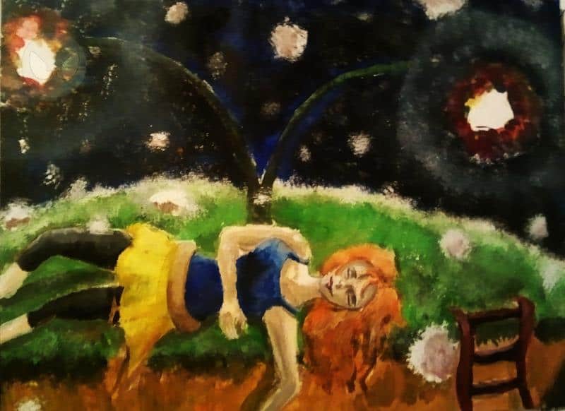 Das ist meine Hauptperson Rachel aus meiner eigenen Story, die auf der Insel gerade vor sich hin döst, umringt von dem leuchtenden "Blütenstaub".