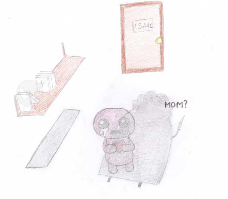 Ich habe mein eines Bild verbessert und nun den Schatten der Mutter auf Isaac gemalt, drum herum habe ich eben noch ein Bücherregal mit der (!) Bibel und eine Tür gemalt :3 Ich hoffe es gefällt euch!