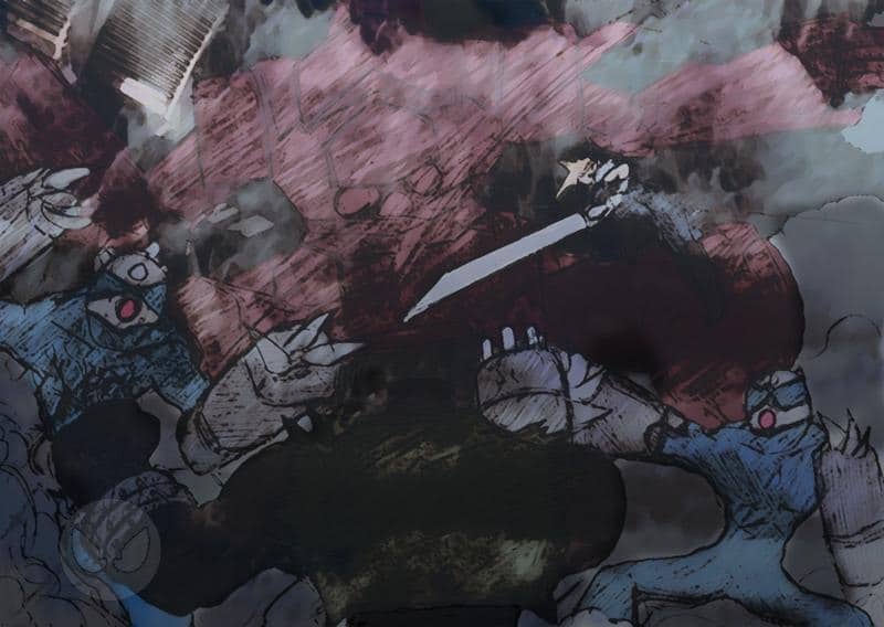 Hier mal ein ganz schnelles und ohne Ausarbeitung, Skizze von einem Kampf