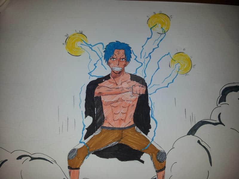 junge, mit einer bestimmten Kraft (weiß noch nich was für eine) bereitet sich für den kampf vor ! einbisschen im Stil von One Piece :)