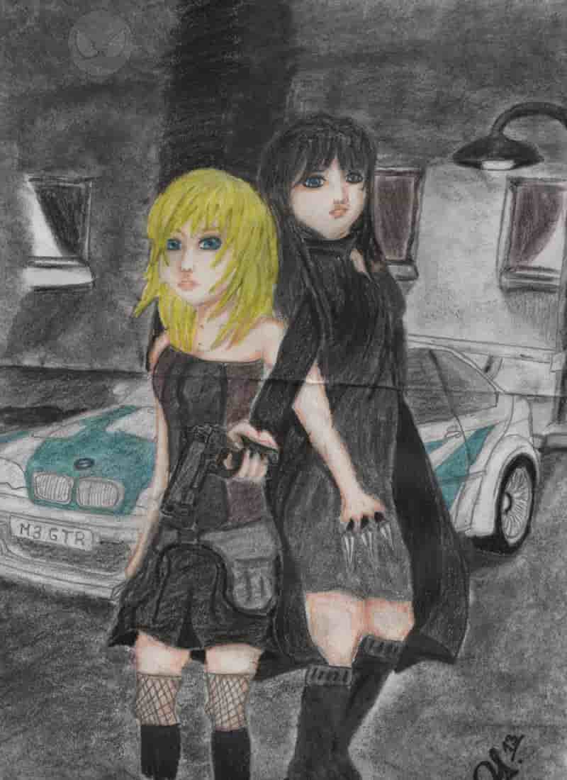 Zum Zeichenstil hinzuzufügen ist auch Kohle. Es zeigt ein Ausschnitt aus meiner Geschichte. Darauf zeigt es Nine und Nia. Der Charaker von Nia wird später noch hinzugefügt. Hatte noch keine Zeit ihn zu zeichnen . ;)