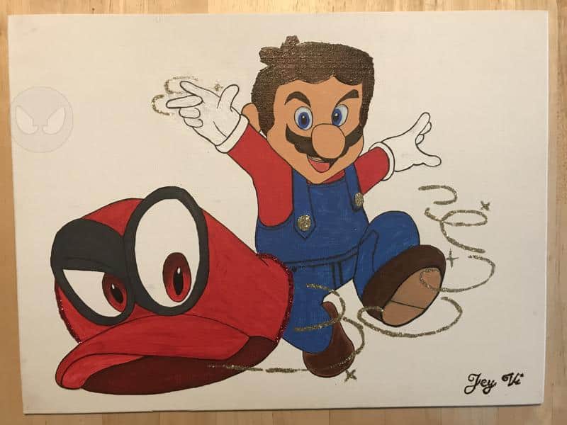 Hier habe ich Mario auf einem kleinen Leinwandkarton gemalt.