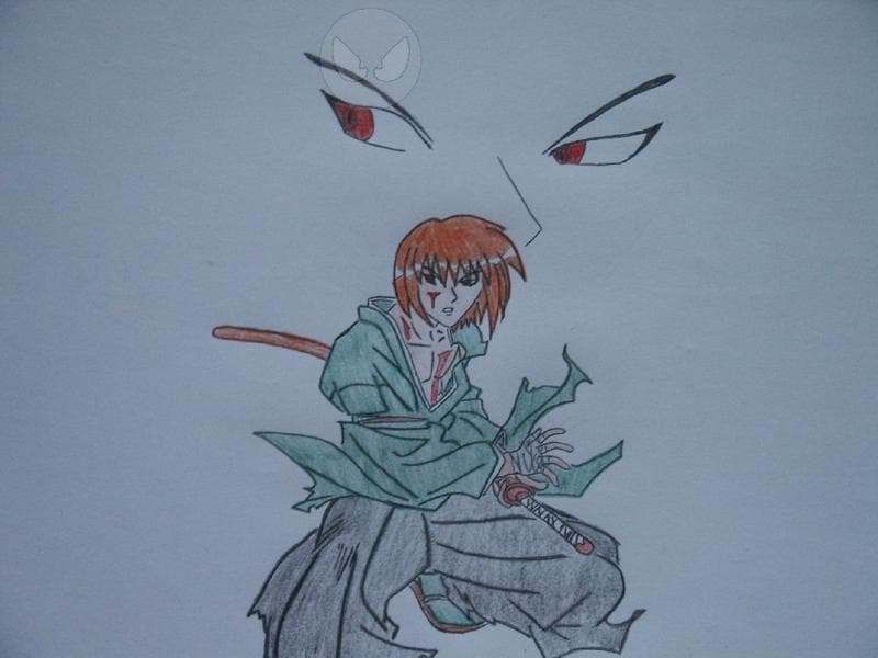 aber es war auch so noch genugt schwierig ihn zu zeichnen... ich hatte einfach mal wieder lust einen schwertkämpfer zu zeichnen und da isser... majoh der dämonische samurai ^^ ((scheiss titel)) ... die augen im hintergrund hätt ich eigentlich weg lassen können sind ziemliech nutzlos ^^