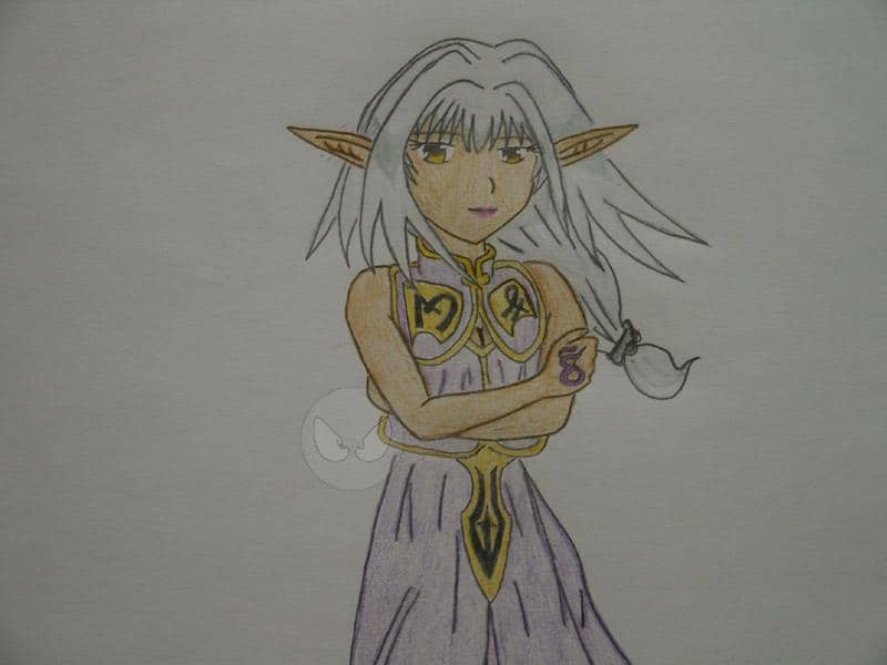 die serie hat mir auch wieder inspiration geschenkt... und prompt hab ich einen neuen chara entworfen... das ist Vereesa die dunkelelfe... ich mag dunkelelfen... 1. ich mag sowiso alle arten von elfen und 2. mag ich wesen mit vampirzähnen ^^ ...