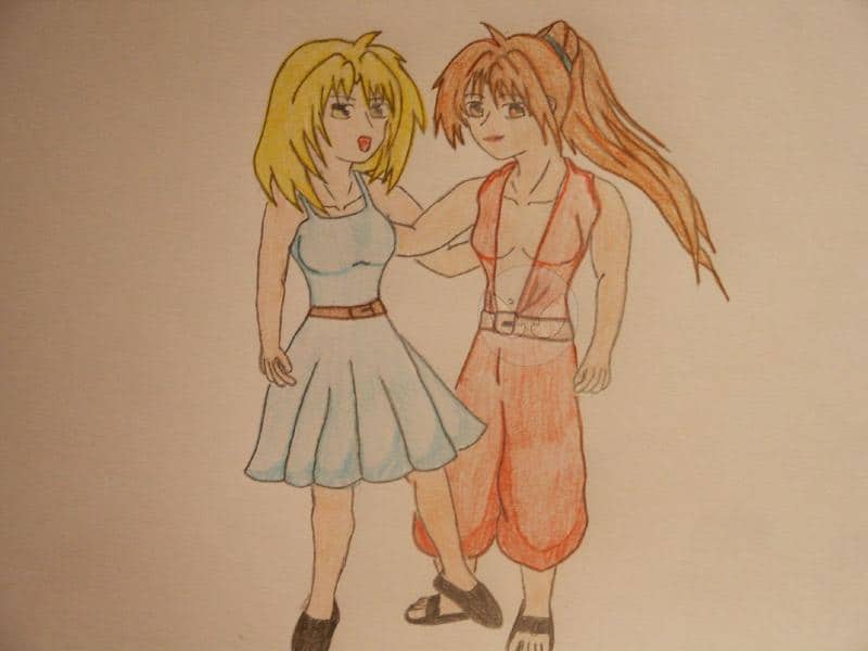 eigentlich sollte das yumi und teachan darstellen... ich finde sieht ihnen nicht ziemlich ähnlich.... sorry vor allem wegen der seltsamen klamotten (besinders bei tea) ich wollte was anderes als shirt und hose zeichnen, is in die hose gegangen^^