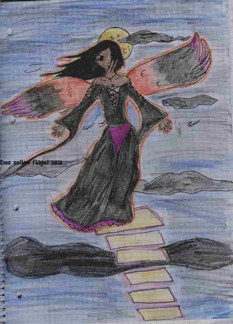 Das hab ich gemalt wärend ich Evanescence gehört hab passt dazu übringens das schwarz,lila,rote sollen flügel sein.