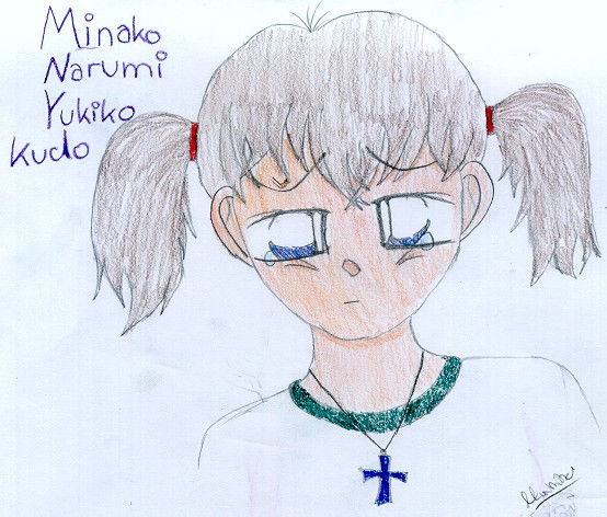 Naja sie ist eine Erfindung einer Freundin und heißt Minako Narumi Yukiko Kudo wie es auf dem Bild steht -.-(das kann doch kein Schwein lesen!) SIe ist Shinichis Schwester bitte bewertet es nicht zu hart ist mein erstes Bild wo ich versucht hab dem Stil von Detektiv Conan etwas näher zu kommen ^^"