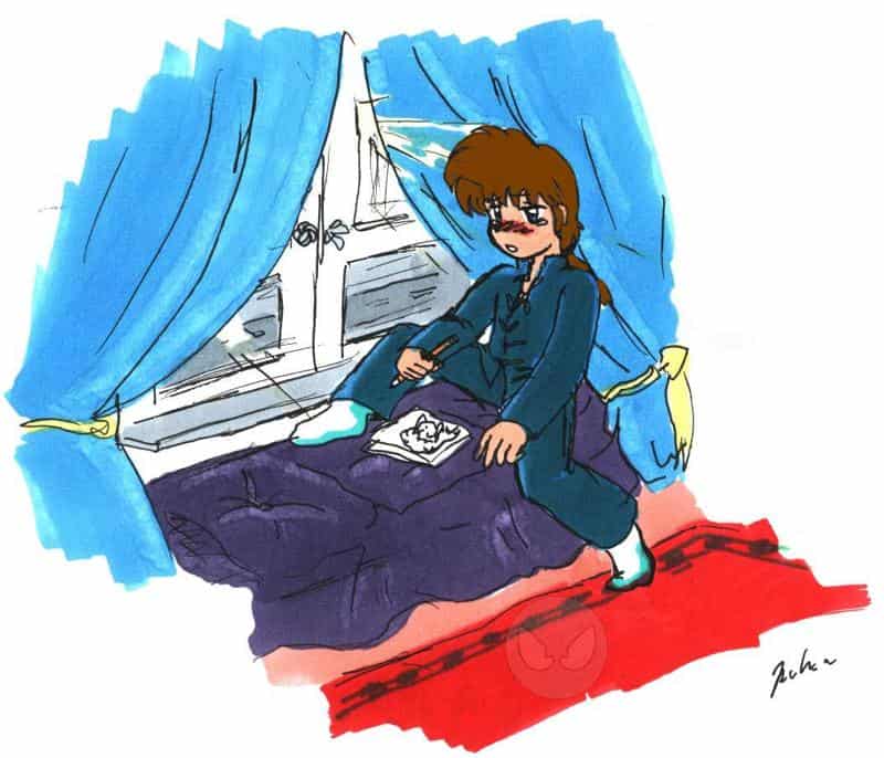 Das ist Ruka, mein "Zeichen-Ich"(Abgesehen davon, das er n Kerl ist, sieht er aus wie ich). Ich hab n neues Scan-Prog ausprobiert, weshalb er leider nicht so gut rüberkommt (Sonst sieht er Ranma nicht so ähnlich), aber ich hoffe, man kann erkennen, dass er nur nen "normalen" Pferdeschwanz hat. Er ist in die Quelle des ertrunkenen Wolfes gefallen (Bilder dazu kommen noch).