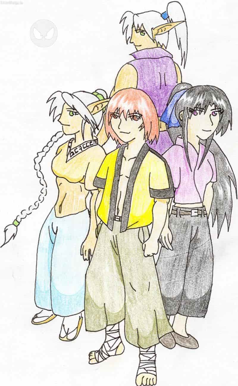 heyo leute... ich bin auch mal wieder da. nun ich weiss immer noch nicht was ich zeichnen könnte und so bastle ich einfach mal ein wenig an meinem stil herum. da ist auch mal wieder eines meiner gruppenbilder entstanden. UND ICH NUTZE DIESEN AUGENBLICK UM MAL EIN WENIG WERBUNG FÜR MEINE FF ZU MACHEN ^^. ALLE DIE SICH FÜR DEN STREIFEN INTERESSIEREN KÖNNTEN MÖGEN MAL UNTER DER RUBRIK FANFICS BEIM AUTORENNAMEN NAZE23 NACHSEHEN ^^DORT FINDET IHR GLAUBE ICH 5 TEILE MEINER BISHER 12 TEILEN LANGEN FF...WEM SIE GEFÄLLT ER KANN ISCH BEI MIR MIT E-MAIL ADDI MELDEN UND ICH SCHICKE IHM DEN REST VIEL SPASS..... so das wars ^^in letzter zeit habe ich das gefühl als wäre mir meine bisherigen leser abhanden gekommen... nun ja ihr solltet ja unterdessen die vier auf dem bild kennen vorne majoh (also ich ^^) links sylphie hinten und rechts die beiden dunkelelfen vereesa (links) und rin(hinten) ... so und nun noch ne widmung... ICH WIDME DAS BILD: BLANKI ZIDDY, MASTERO, SAYOKO, MARIGU, YUMI-CHAN, TEXONDRA, RATTENSPION, JALE, NURDIESTIMMEN... UND ALLEN DENEN MEINE BISHERIGEN BILDER GEFALLEN (kein bock auf aufzählungen) also noch einen schönen abend greez majoh