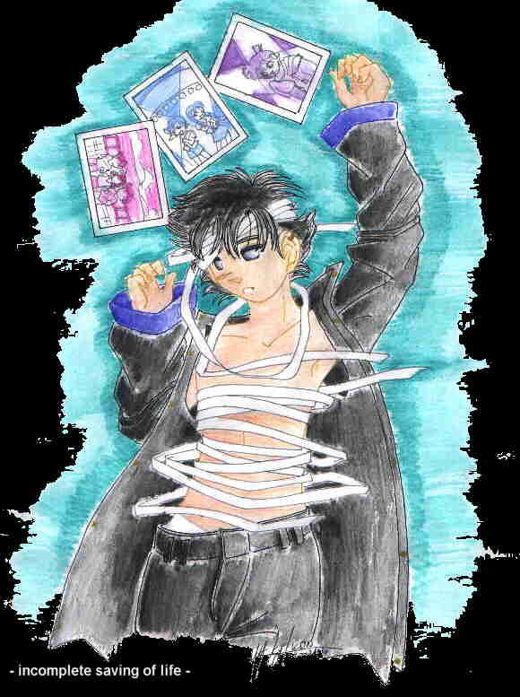 Das Bild sollte auch eigendlich den Lebensweg von Kikan zeigen, wie er erst auf der Fähre (als Taisuke) auf Shichi und Ran trifft, dann, wie er mit Mai (hier wird das i gesondert gesprochen : ma i) singt und zum Schluss, als er das Foto macht, wie Shichi vergiftete wird.